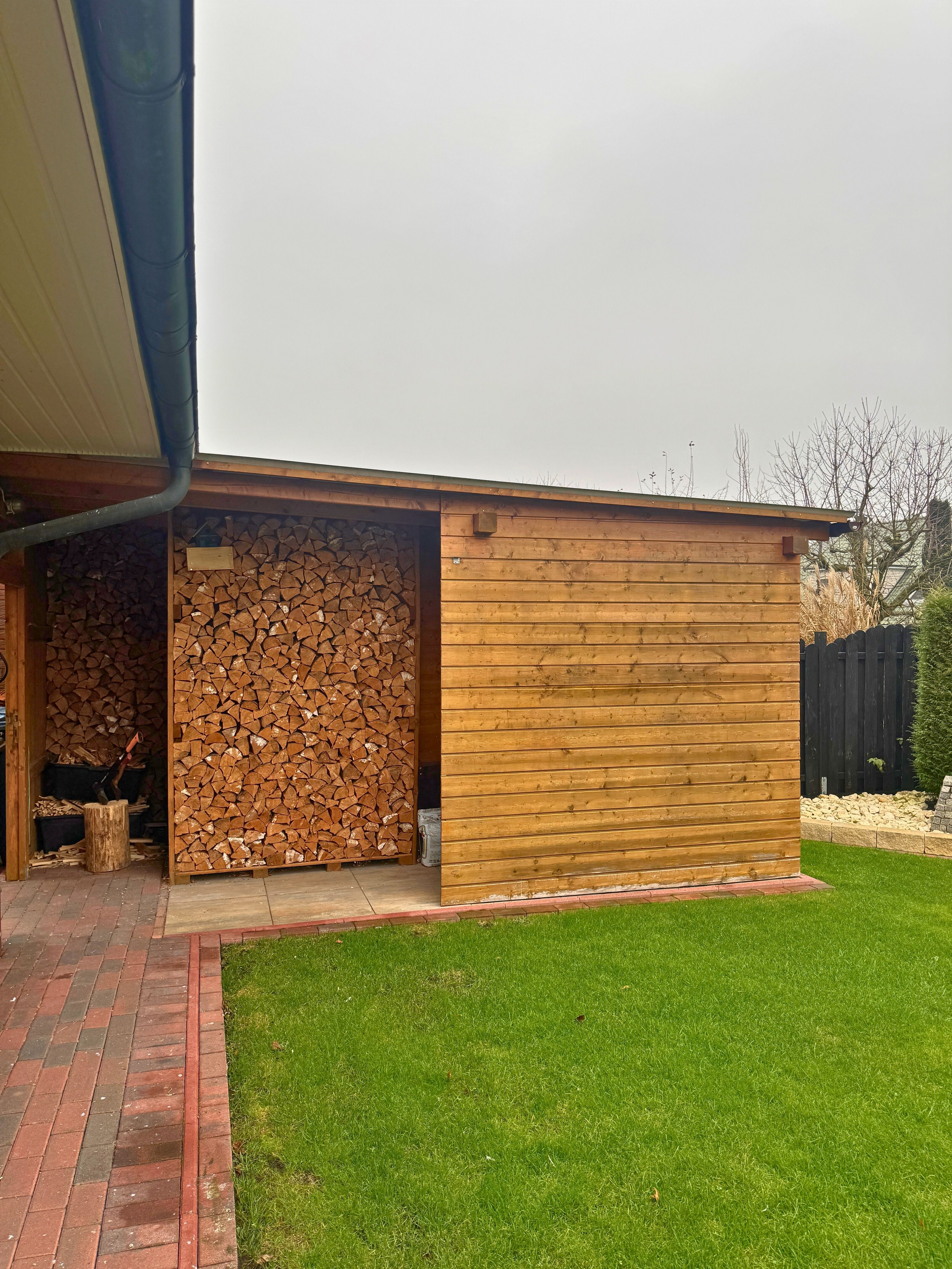 Zum Haus gehört eine Garage mit integriertem Geräteraum. Hinter der Garage befindet sich zudem ein praktischer Holzschuppen, der sich perfekt als Lagermöglichkeit für Kaminholz anbietet. Die Gasheizung wurde erst im Jahr 2022 erneuert und sorgt für eine energieeffiziente Wärmeversorgung.